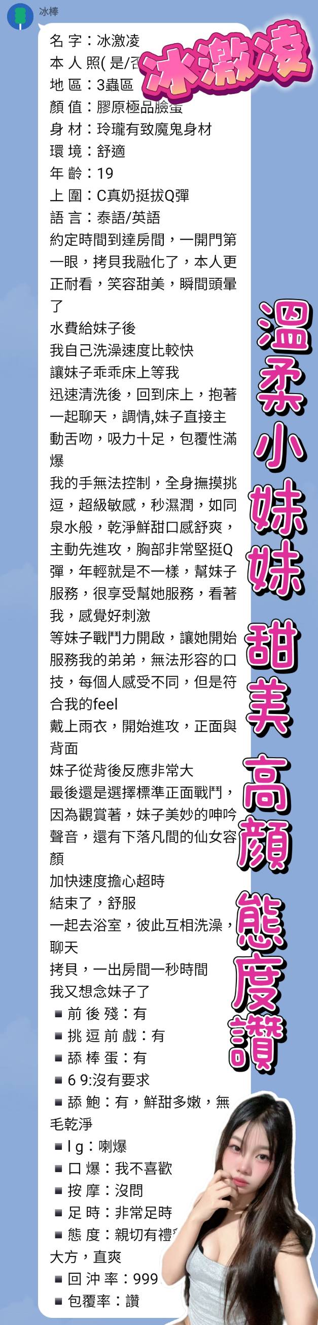 冰激凌-身高158/體重46/年紀19/罩杯C/泰國
