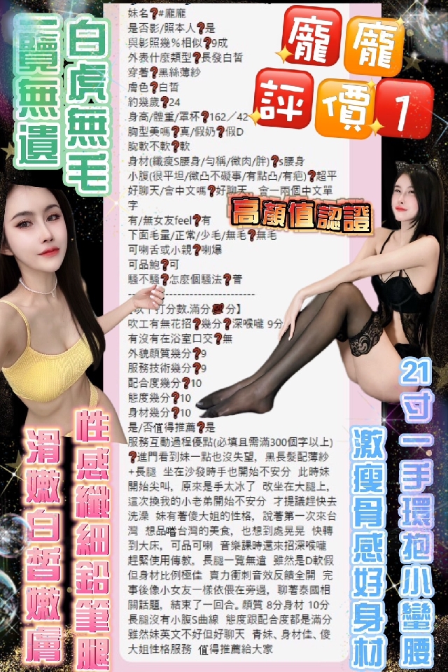 (服務項目) 提早一天預約送自衛秀 舌吻(看帥&感覺) ️ ️ 冰火吹(需自備冰塊) 買2S送口爆(需交代) 強姦客人(需交代) 水中蕭 幫寬衣 陪洗 無套吹 品鮑 69 深喉嚨 輕功 胸射 微按摩 高跟鞋(需交代 角色扮演(客自備) 絲襪+100 跳跳糖+100 口爆+500 清槍+500 艷舞+200 口爆+清槍+800 吞精秀+500 自慰秀+500 情趣用品非侵入式+500 (客自備全新產品) 買2節送1S(100分鐘3S) 買3節送1節(200分鐘3S) 包夜買5節送3節(8小時、5S) (須讓妹睡覺4小時以上)